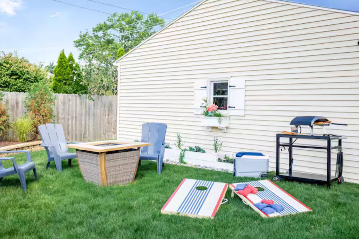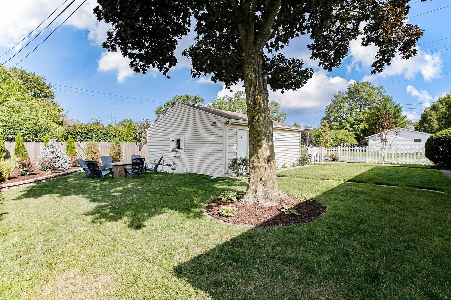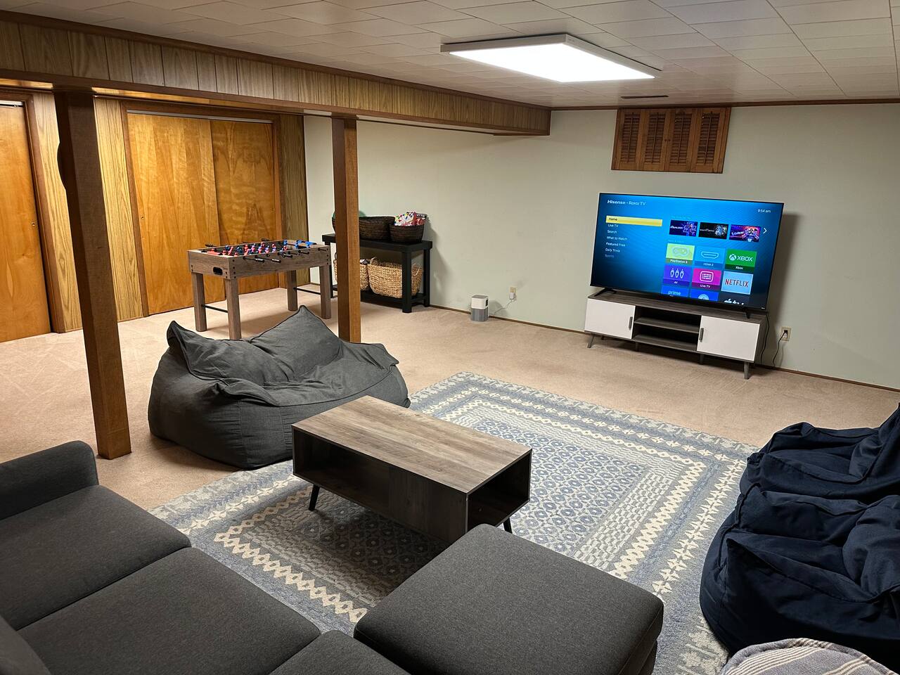 No Stairs to access the living rm, dining rm, kitchen, 3 bedrooms, and 1.5 bathrooms! The comfortable living room offers: → Large Smart TV (login to your own Hulu, Netflix, etc) → Comfortable seating → Natural lighting The fully equipped kitchen is stocked with: → Electric range/stove → Full size fridge → Microwave → Dishwasher → Blender → Pots, pans, dishwares & silverware → Cooking basics (oil, salt/pepper) → Dining table seats 6 The first bedroom offers: → Plush KING size bed! → Closet space → Room darkening shades → Ceiling fan The second bedroom has: → Comfy Queen bed → Closet Space → Room darkening shades → Dresser w/ Drawer space → Ceiling fan The third bedroom has: → 2 twin beds → Closet space → Room darkening shades → Ceiling fan The bathroom is equipped and stocked: → Tub/Shower combo → Plush towels & makeup towels → Q-tips and cotton pads → Shampoo, Conditioner, and Body Wash Family Friendly supplies include: → Pack ‘n Play → Children’s dinnerware → Baby monitor & bath The second (half) bathroom is tucked away on the main level. Go down one full set of stairs to the lower level: → Additional seating → Large Smart TV (login to your favorite apps like Hulu, Netflix) → Foosball table → Washer & Dryer available for your use Check out the back yard & enjoy: → Portable BBQ Grill (propane not provided; uses portable grill size propane fuel) → Firepit (propane provided/fueled) → private & fully fenced → backyard games like Bean Bag Toss → 2-car detached garage (available for guests to park their cars out of the weather) By booking my place, you acknowledge the following house rules and understand there will be a penalty for breaking: → No Pets → No Smoking indoors (please keep smoking outdoors with windows & doors shut) → No Parties or gatherings - any additional guests must be approved. → Please return the garage door clicker to avoid a $75 fee. There are security cameras in use at my place that monitor outside of both entry points to the home. These cameras record 24/7 but can NOT see inside the home at anytime.