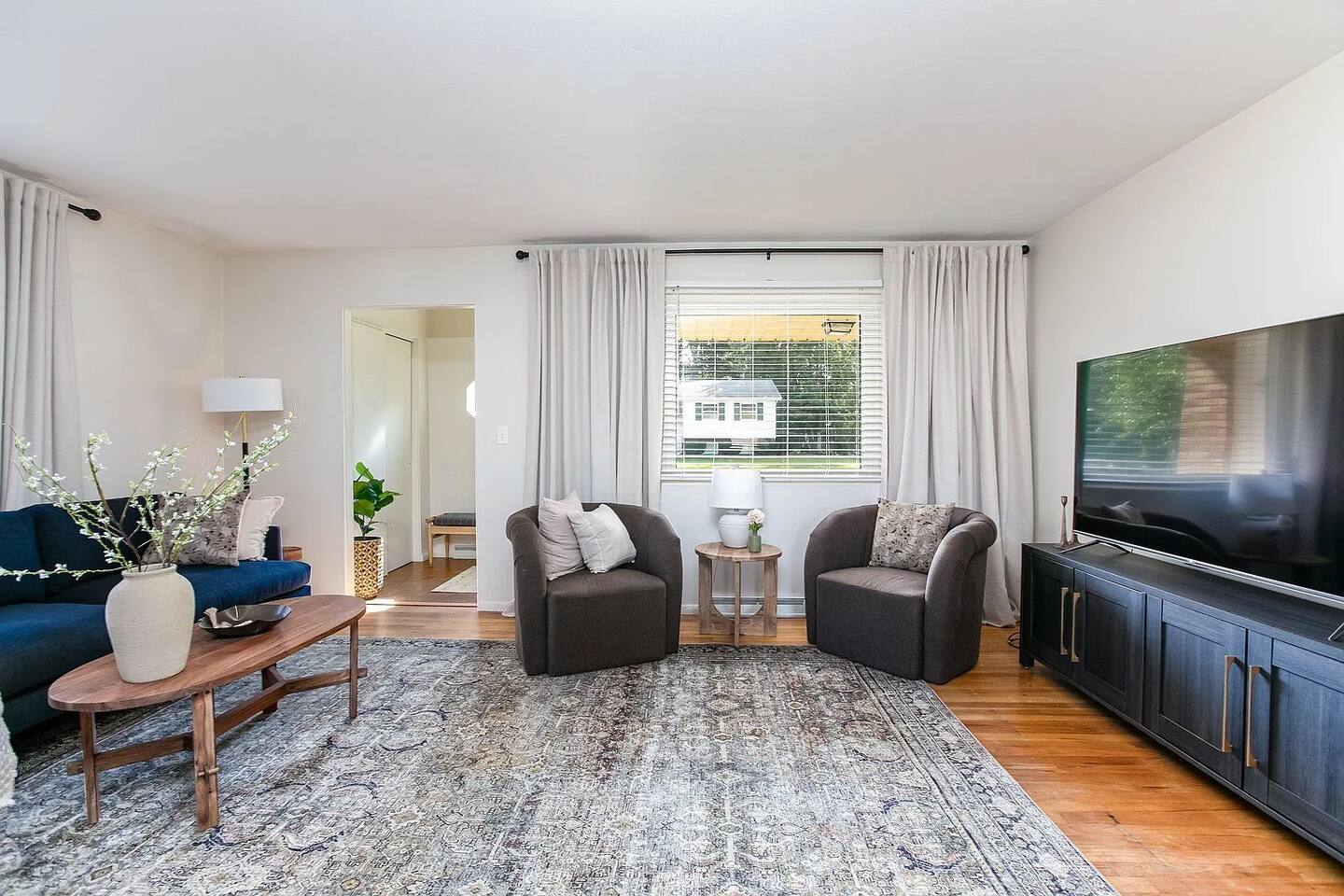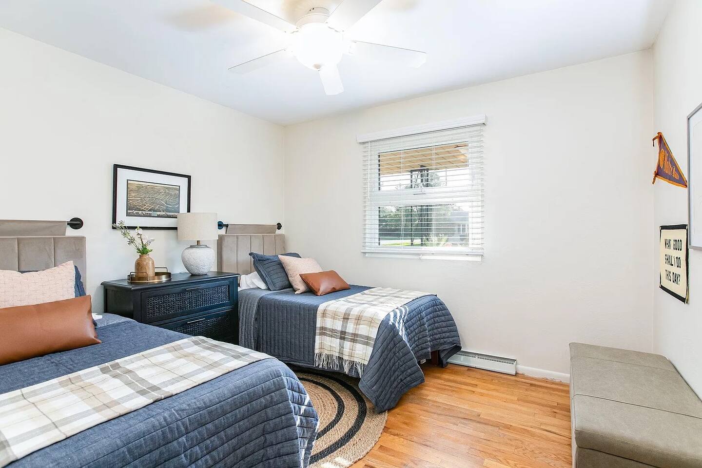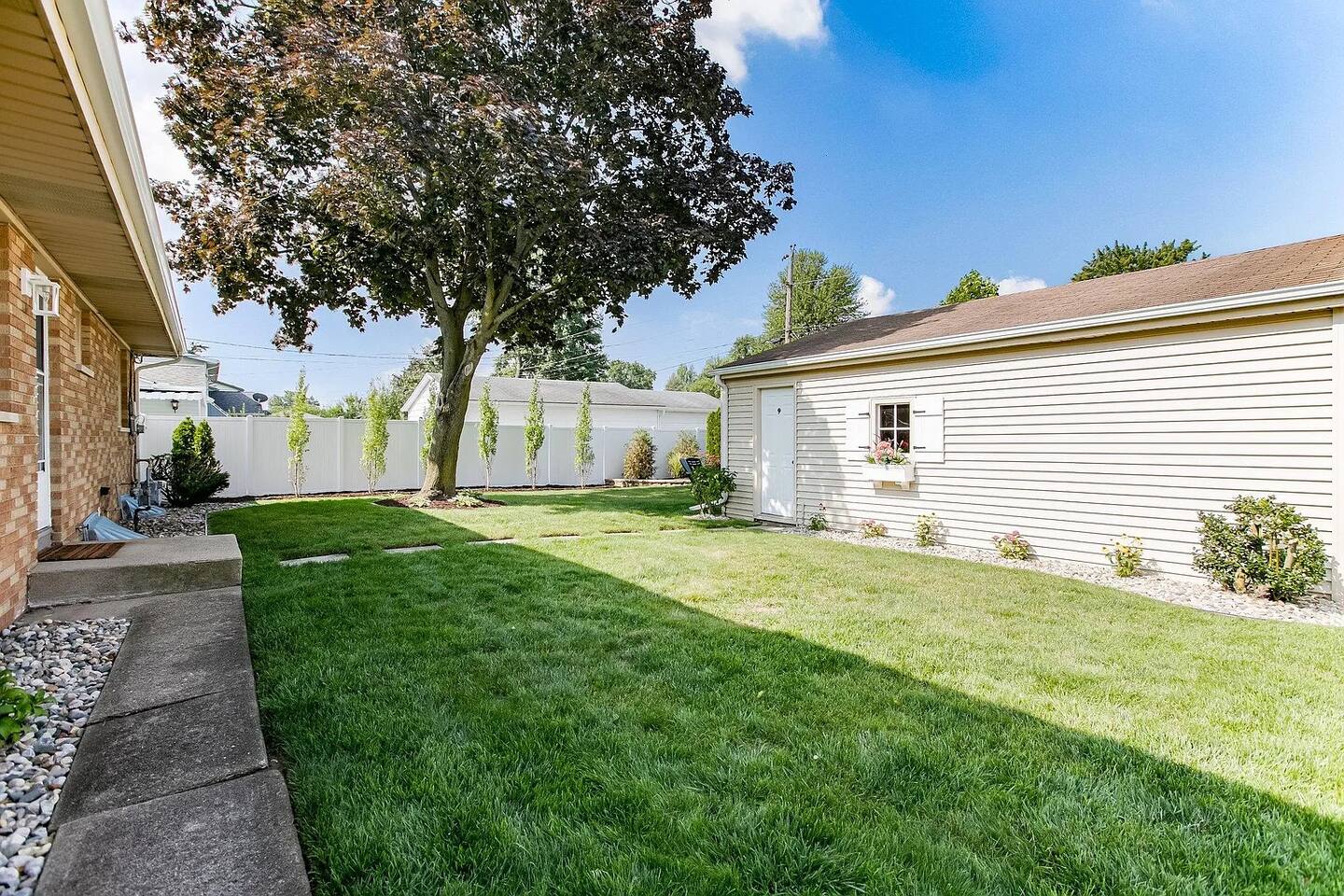 No Stairs to access the living rm, dining rm, kitchen, 3 bedrooms, and 1.5 bathrooms! The comfortable living room offers: → Large Smart TV (login to your own Hulu, Netflix, etc) → Comfortable seating → Natural lighting The fully equipped kitchen is stocked with: → Electric range/stove → Full size fridge → Microwave → Dishwasher → Blender → Pots, pans, dishwares & silverware → Cooking basics (oil, salt/pepper) → Dining table seats 6 The first bedroom offers: → Plush KING size bed! → Closet space → Room darkening shades → Ceiling fan The second bedroom has: → Comfy Queen bed → Closet Space → Room darkening shades → Dresser w/ Drawer space → Ceiling fan The third bedroom has: → 2 twin beds → Closet space → Room darkening shades → Ceiling fan The bathroom is equipped and stocked: → Tub/Shower combo → Plush towels & makeup towels → Q-tips and cotton pads → Shampoo, Conditioner, and Body Wash Family Friendly supplies include: → Pack ‘n Play → Children’s dinnerware → Baby monitor & bath The second (half) bathroom is tucked away on the main level. Go down one full set of stairs to the lower level: → Additional seating → Large Smart TV (login to your favorite apps like Hulu, Netflix) → Foosball table → Washer & Dryer available for your use Check out the back yard & enjoy: → Portable BBQ Grill (propane not provided; uses portable grill size propane fuel) → Firepit (propane provided/fueled) → private & fully fenced → backyard games like Bean Bag Toss → 2-car detached garage (available for guests to park their cars out of the weather) By booking my place, you acknowledge the following house rules and understand there will be a penalty for breaking: → No Pets → No Smoking indoors (please keep smoking outdoors with windows & doors shut) → No Parties or gatherings - any additional guests must be approved. → Please return the garage door clicker to avoid a $75 fee. There are security cameras in use at my place that monitor outside of both entry points to the home. These cameras record 24/7 but can NOT see inside the home at anytime.