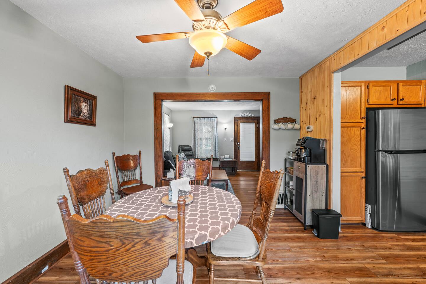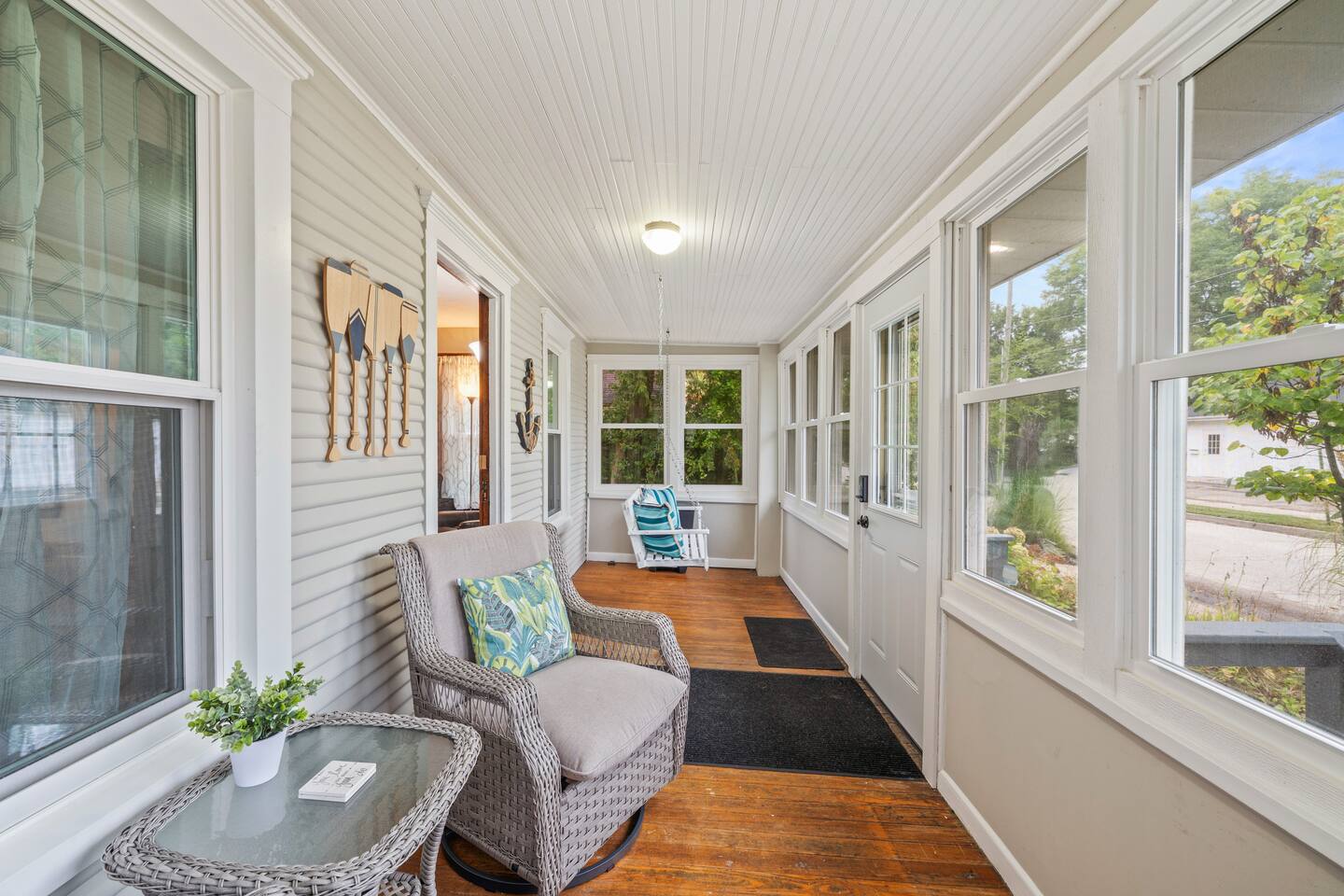 The Kitchen is fully equipped so cooking is easy! Including: → Pots, Pans, Cookware + Utensils → Dishwasher + Toaster → Coffee Bar stocked with coffee, k-cups, sugar, creamer The living room offers comfortable seating with a large Smart TV → Login to your Hulu, Netflix, etc → Fast wifi included with your stay Head upstairs to find the two bedrooms and bathroom! The first bedroom → View of St. Joe River → Queen bed → Ceiling fan + Closet space The second bedroom → Queen Bed → Twin bed → Pack n Play → Iron/Ironing Board → Extra blankets The bathroom has a walk-in shower and is stocked with: → Shampoo, conditioner, + body wash → Plush bath towels + makeup towels → Hairdryer + a makeup mirror → Q-tips + cotton pads Please note, a washer/dryer is not available for guest use - however, The Village Tub is only 10 minutes away if you need a place to wash your clothes before heading home! The two bedrooms and bathroom are upstairs – there is not a bathroom on the main level. Popular local destinations & their travel time from Riverside Retreat: The Morris Estate - 11 minutes (5 miles) Notre Dame Campus - 20 minutes (10 miles) Silver Beach - 35 minutes (24 miles) Warren Dunes - 36 minutes (25 miles) Andrews University - 15 minutes (10 miles) Red Bud MX - 16 minutes (11 miles) Fernwood Botanical Garden - 13 minutes (9 miles) Four Winds Casino Dowagiac - 15 minutes (10 miles) Four Winds Casino South Bend - 25 minutes (18 miles)